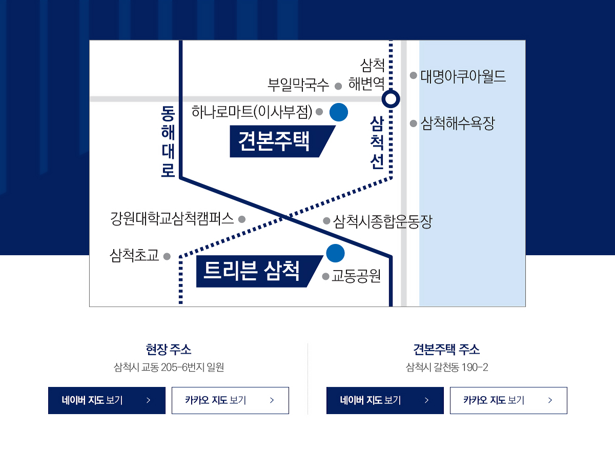 ※ 견본주택 및 현장의 상세위치는 반드시 주소를 확인하시고, 주변 도로 및 건물, 경로 등은 네이버, 카카오 지도를 통해 확인하시기 바랍니다.